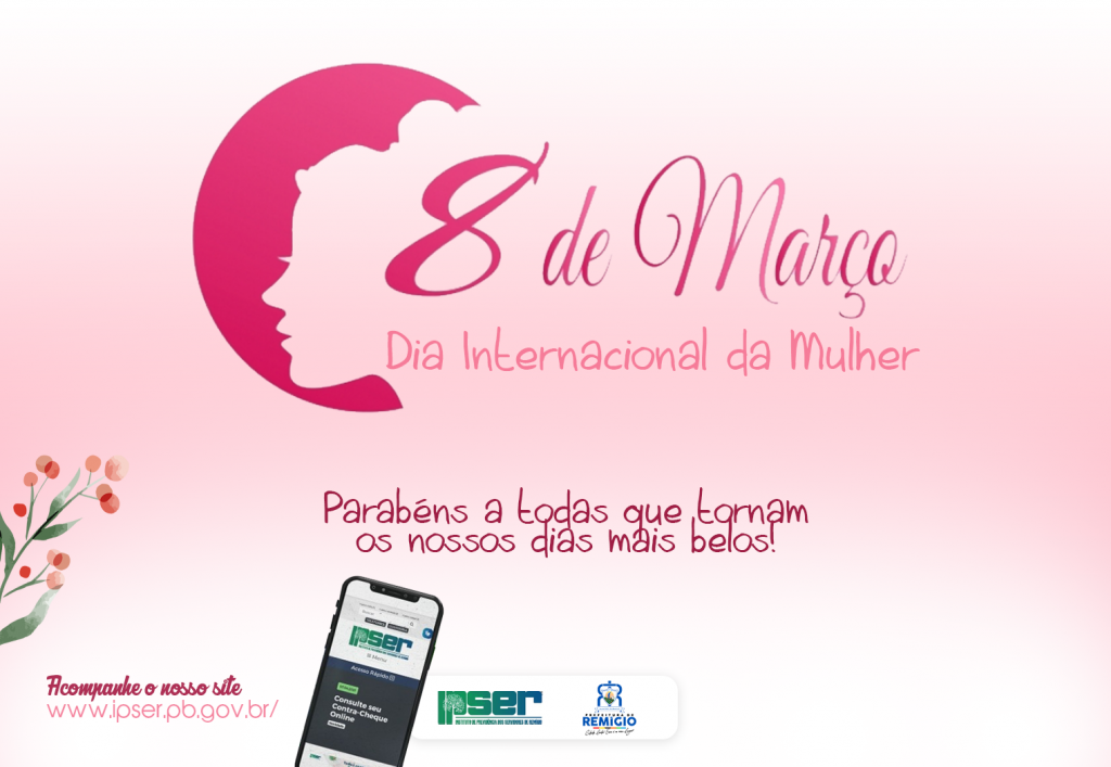 Hoje (8) de Março celebramos o Dia Internacional da Mulher . O instituto de previdência do município de Remígio tem o orgulho de desejar a todas as mulheres do nosso município como também de todo Brasil , um dia repleto de homenagens, amor e reconhecimento.