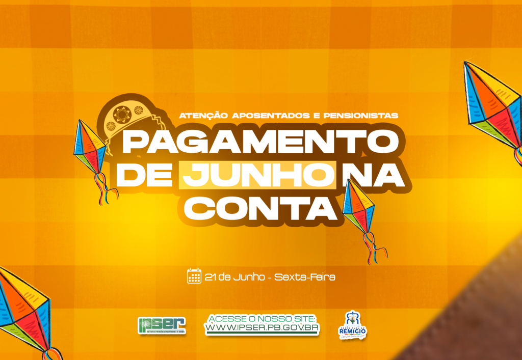 Atenção aposentados e pensionistas, pagamento referente ao mês de junho já está na conta! Boas festividades juninas!